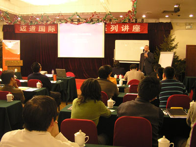 2006年12月14日迈道国际公司在北京城市宾馆举办了一场别开生面的项目管理免费讲座。此次讲座得到了国内外多家大型知名企业的肯定。此次免费讲座是专门针对资深项目经理、项目顾问而设计安排的,目的是和大家一起分享项目管理在应用中的最佳实践。