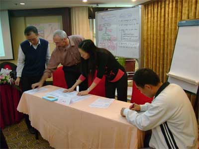 2007年11月1-3日迈道国际资深的项目管理专家,拥有30多年项目经验的德国籍讲师Peter为来自不同领域的项目经理以及高校讲师进行了为期3天的项目监控沙盘模拟课程