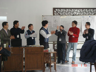 2008年1月13-14日,我公司为某著名软件公司的中高层领导进行了全面管理沙盘实战培训。同学们在张老师的带领下做了4年的企业经营模拟,其中还设计了企业重组,市场变化等多种情况。学员们都非常积极地参与,热烈讨论,在实际操作中学会了财务管理、投融资操作、人员管理、经营预测等企业管理知识。公司的总经理还结合本公司实际情况进行相应的点评,课堂气氛非常活跃,休息时学员和老师还在讨论问题,第一天晚上学员们还加班加点进行练习。通过两天的学习,学员们都学到很多实用的知识技能,对工作帮助很大。