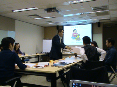 2008年3月24~25日在北京为某著名财富管理公司北京分公司进行了其内部培训师的培训,11名来自各部门的同事们在两天的里通过老师诙谐幽默的讲解充分练习了培训的技巧,交流在培训中遇到的各种问题的处理办法,学习在轻松愉快的气氛中有效进行,大家对未来在公司里进行内部培训充满信心。